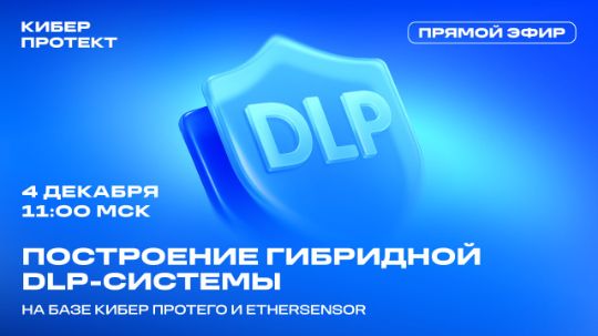 4 декабря, 11:00 (МСК), в прямом эфире расскажем, как построить гибридную DLP-систему, объединяющую лучшие практики и технологии двух решений — Кибер Протего и EtherSensor.